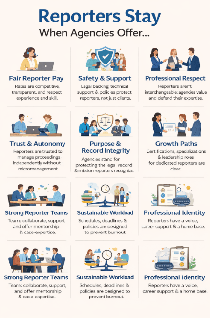 The future of court reporting will not be decided by whether proceedings occur in physical rooms or virtual ones. It will be decided by whether the profession consistently communicates that its value lies in responsibility, not presence. Not in inconvenience, but in integrity. Remote work did not diminish court reporting. It clarified it.