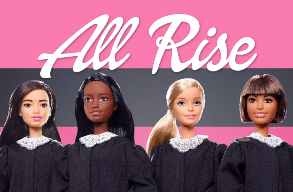“Judge Barbie is available in a variety of different skin tones and hairstyles. She comes with a customary black robe and a lacy collar that looks strikingly similar to Justice Ruth Bader Ginsburg’s.”