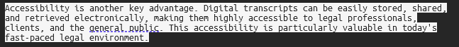 Traditional court reporters have enjoyed enhanced accessibility of their transcripts for decades. Court Reporters have been uploading their transcripts to the court system for two decades and they’ve been uploading them to agency archives for over three decades. They’re easily stored, shared, and retrieved electronically. This is not a differentiator.
