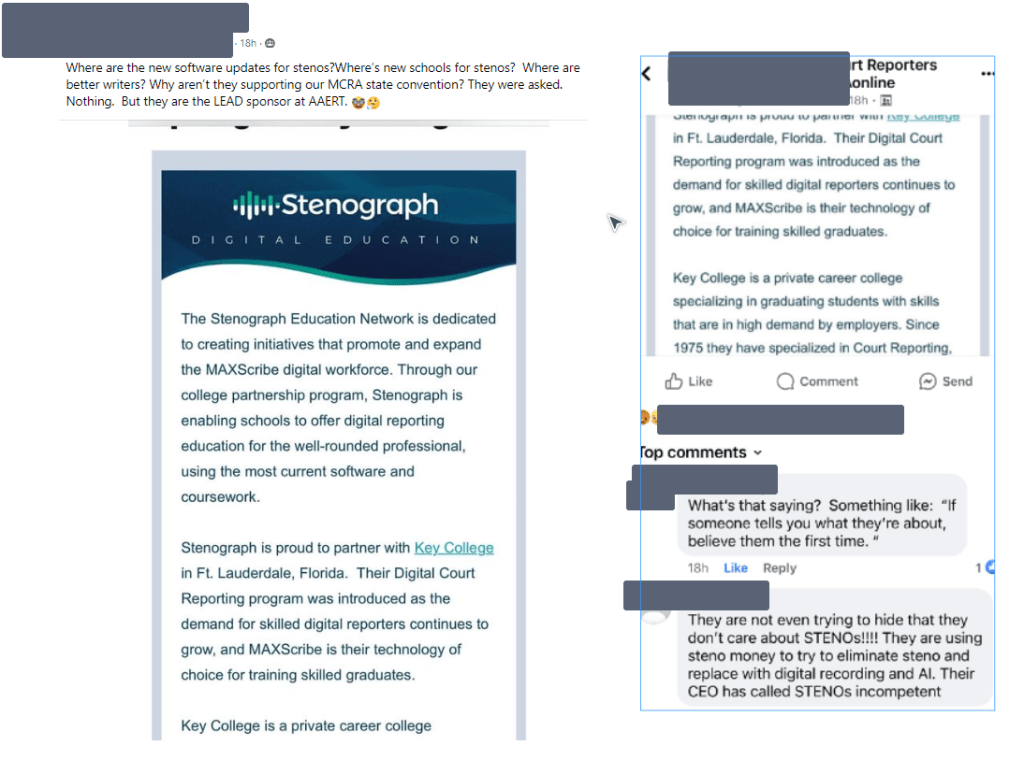 Our long-time trusted CAT software and machine hardware vendors are getting in on it too, creating ASR software for these new untrained, uncertified, persons off the street so they can simply set up the microphone and hit record or start a file and the software does all the transcribing for them, with a less-than-80% accuracy rate. Believing they can replace court reporters with their imperfect speech recognition technology, and then just hire scopists and proofreaders, like reporters do, to polish it and complete it, they’ve gone all in with years of R&D in the hopes of striking gold and being on the forefront of what they believe to be revolutionary technology.