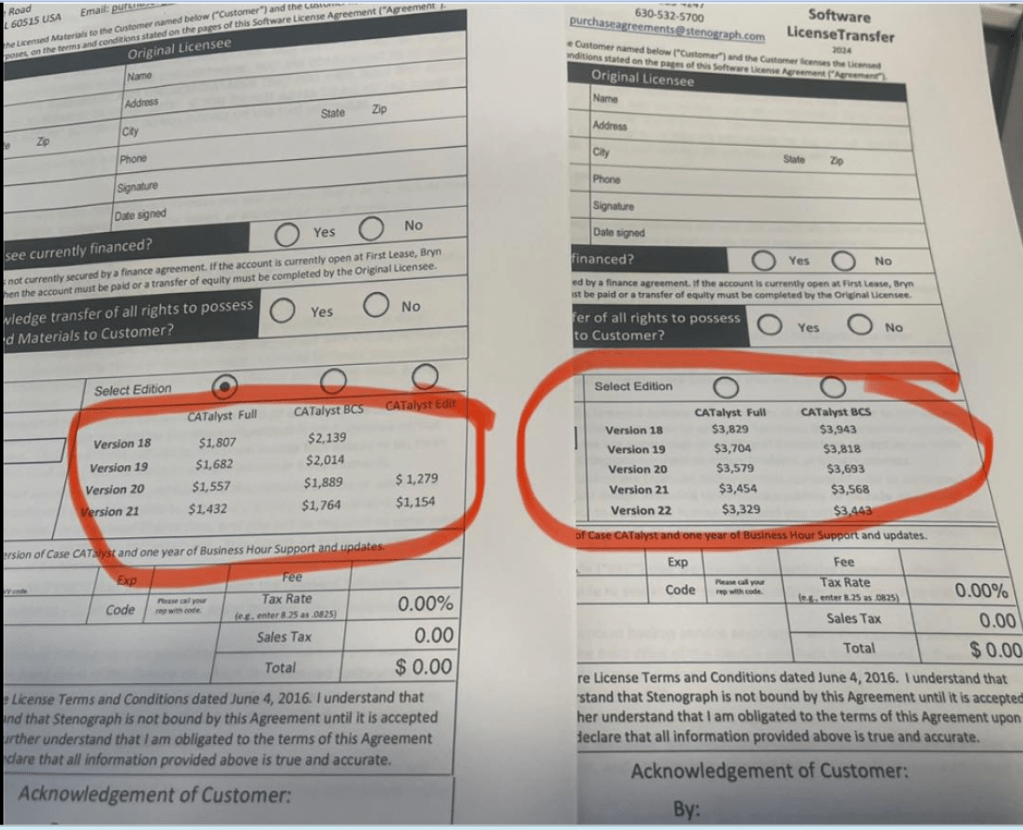 Recently, a consumer posted a concerning update about a significant change to Stenograph’s license transfer fees, which have more than doubled from $1,400 to $3,400. For those unaware, Stenograph is a company that provides software and equipment for the stenographic profession, and its Case CAT software is widely used by court reporters. This price hike has led some to question whether the company’s actions are in violation of fair business practices, especially considering the impact on retiring professionals looking to sell their software to newcomers.