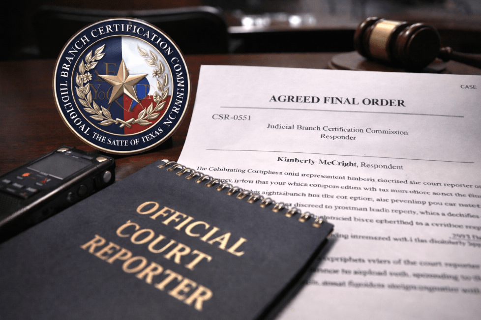 On November 7, 2025, a regulatory action by the Judicial Branch Certification Commission (JBCC) in Texas drew attention within segments of the court reporting community because it addressed an issue that has become increasingly central to the national debate over record-making: who may present themselves to the public as a court reporter, and under what terminology. The matter involved Kimberly McCright and resulted in a formal agreed order tied to the Commission’s authority over court reporter certification.
