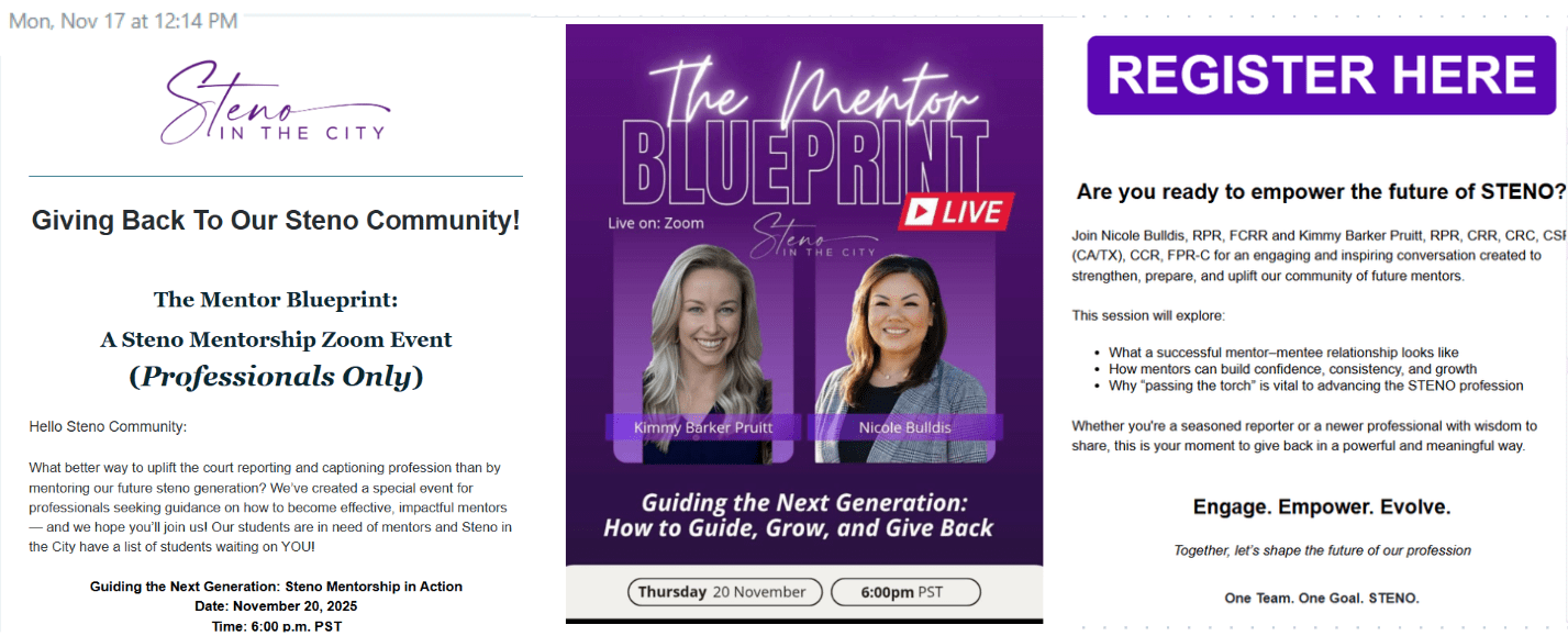 A “free mentorship event” sounds harmless—until you realize it may be a data-collection funnel for a trademarked for-profit brand. If speakers aren’t compensated, if attendees unknowingly become marketing leads, and if the program mimics a nonprofit without governance or transparency, the community must ask hard questions. Court reporters deserve mentorship rooted in ethics—not a commercial pipeline in disguise.